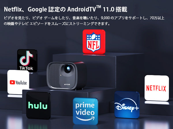 認定されたNetflixがプリインストールされています。 Android TV システムで視聴したり、プロジェクターでビデオを直接キャストしたりできます。