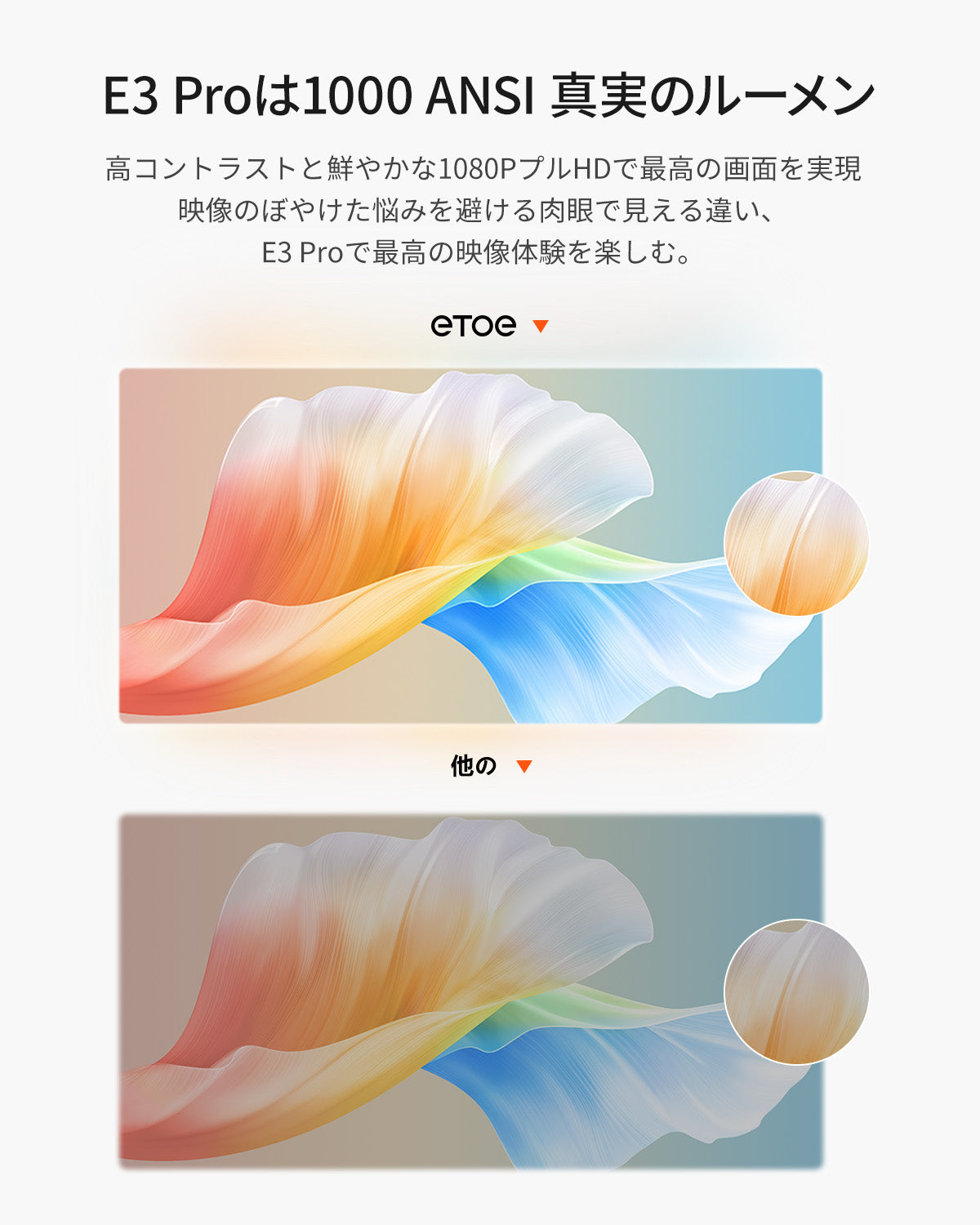 投影された画像の鮮明さは、主にプロジェクターの解像度とビデオの解像度によって決まります。 ETOE プロジェクターのネイティブ解像度は 1080p です。画像が鮮明でない場合は、ビデオの出力解像度が 1080p であることを確認してください。