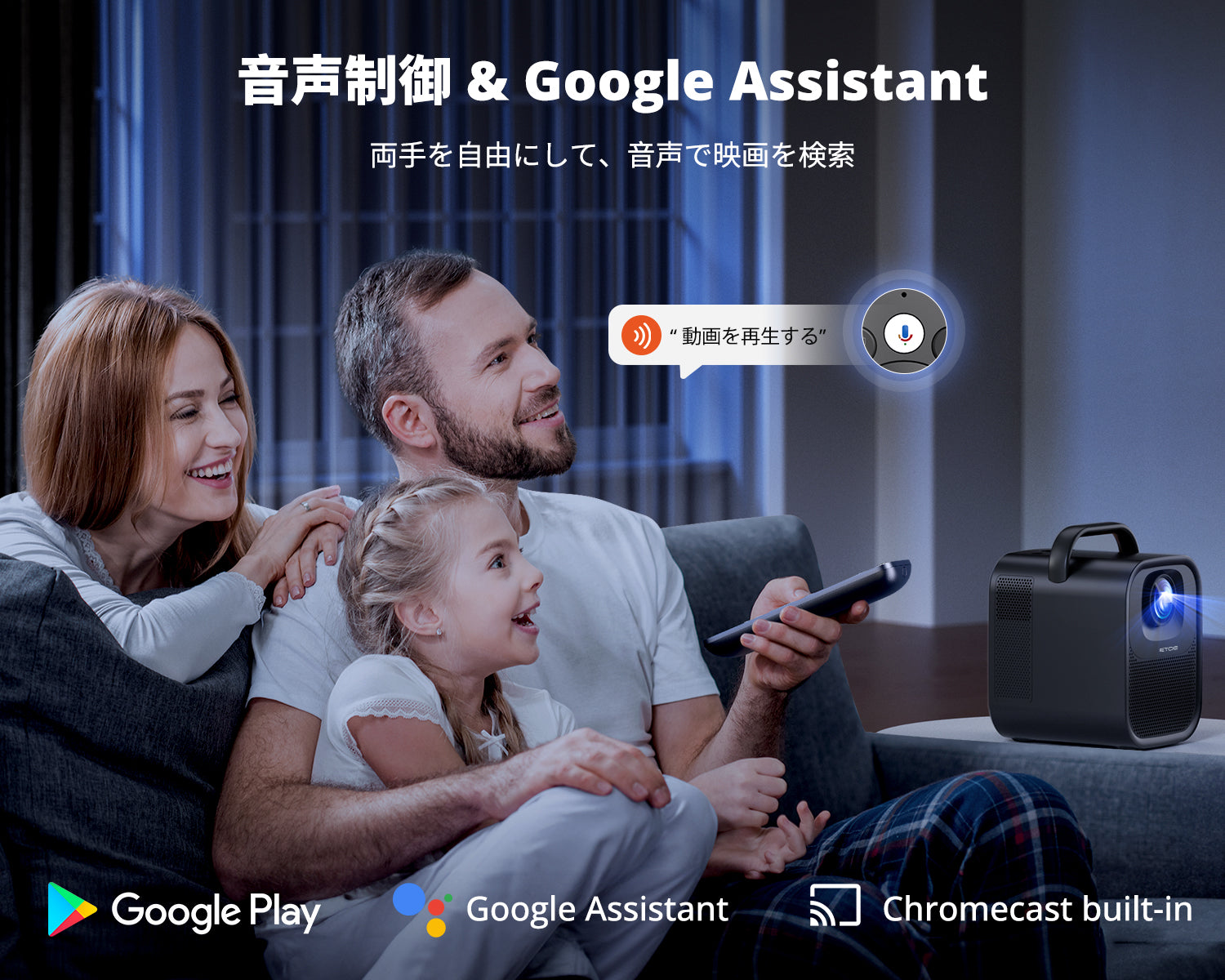 音声制御: Googleアシスタントを使用。