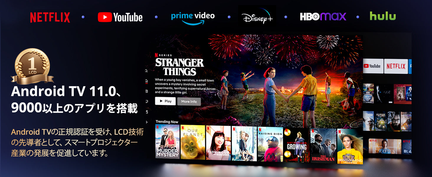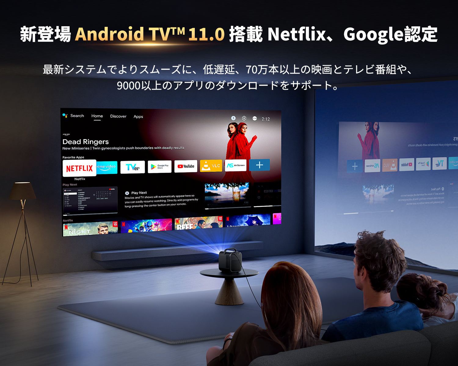 認定されたNetflixがプリインストールされています。 Android TV システムで視聴したり、プロジェクターでビデオを直接キャストしたりできます。