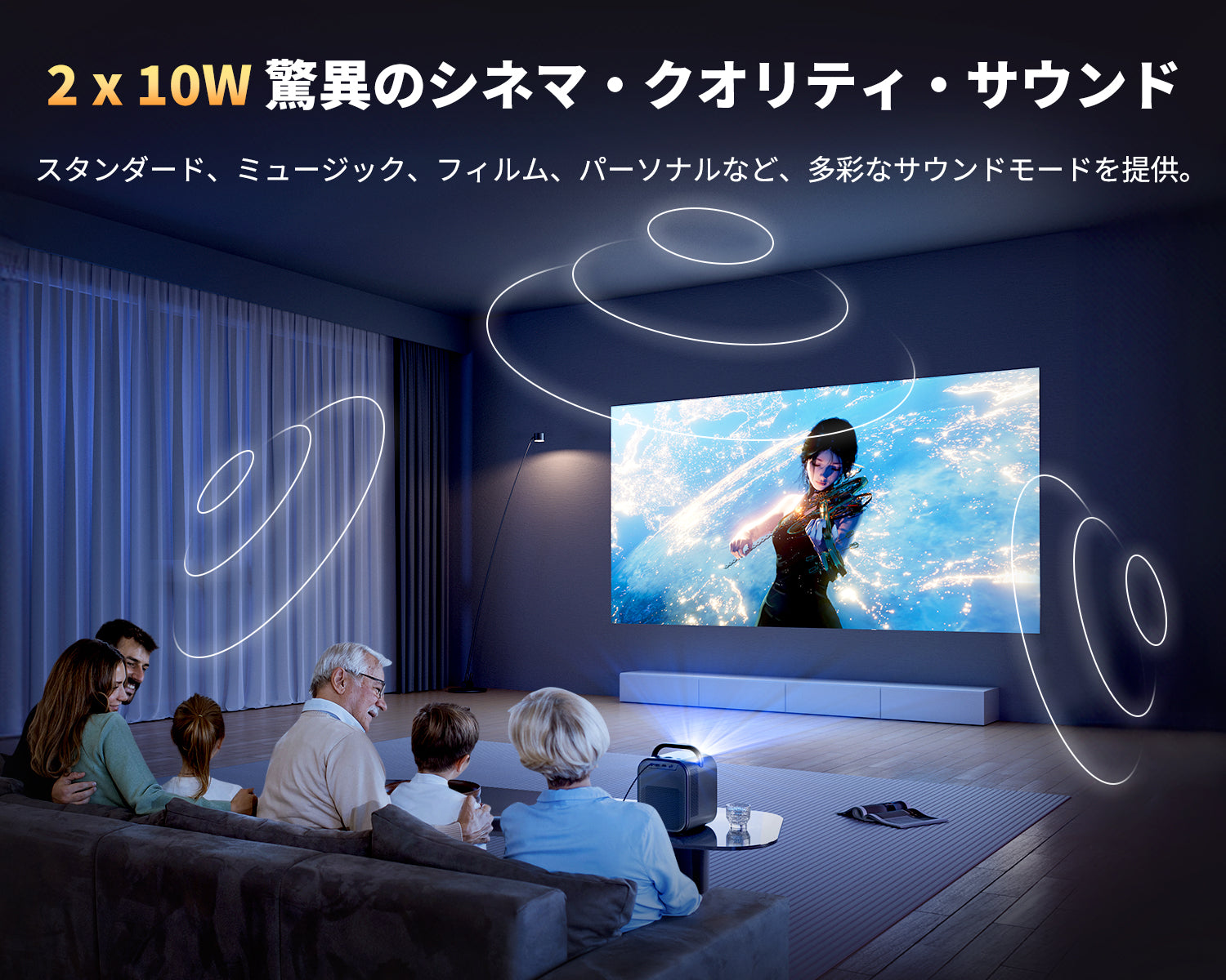 高品質な音響効果:独自の音響技術により、2x10Wのスピーカーは優れた音質を実現し、クリアでバランスの取れた音を提供し、映画の細部にまで感動できます。