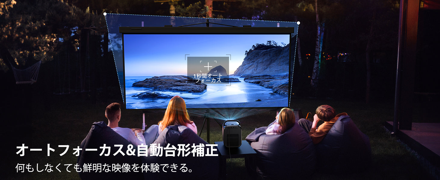 自動的に画像を調整し、プロジェクターを移動して大画面の映画体験をお楽しみいただけます。