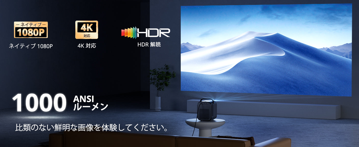 優れた品質: 1080Pの解像度、中央輝度1000 ANSIルーメン。